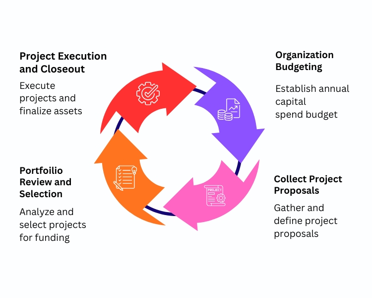 State and local governments, utilities, oil & gas firms, mining and other commercial organizations managing capital assets follow a fairly standard process with variations for type of organizations and specific cultural differences.